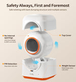 Safety is a priority: PIR motion sensors, weight sensors, and overload protection pause the system when your cat is near. The fully enclosed design keeps your cat secure inside.