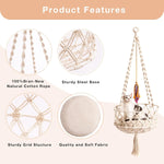 Durable & Safe: Crafted from 100% natural high-quality cotton rope with a thick, soft texture. The double steel hoop and metal frame support the hammock securely, minimizing excessive swinging and ensuring safety for your pet.