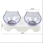 Give your pet a healthier and more enjoyable mealtime with this Transparent Cat Head Double Bowl! Designed with a 15° tilt and an elevated base, this bowl promotes better posture and digestion while preventing spills.